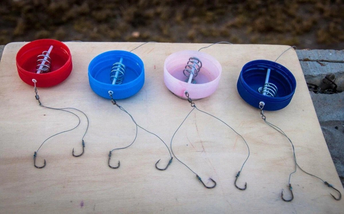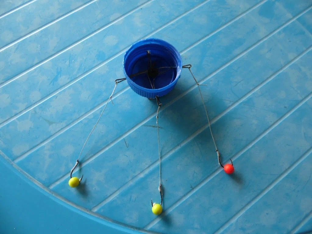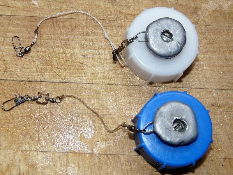 Есть и такие рыбаки, которые умудряются ловить рыбу и на металлическую крышку. При создании такой снасти, потребуется использование плоского грузила, которое крепится на дне кормака. Главное предназначение грузила, заключается в том, чтобы удержать снасть в одной точке, при этом оно не дает кормушке перевернуться. Пробку нужно снарядить поводками с крючками, наполнить кормовой смесью, которая должна быть по консистенции как пластилин. В качестве удилища можно использовать спиннинговый или фидерный бланк. Монтаж крепится к основной леске сбоку или сверху. При проведении заброса пробка поднимается вверх и принимает горизонтальное положение, а при опускании на дно, она ложится открытой частью вверх. При выборе пробки неважно, на чем вы остановите внимание. Она может быть любой - большой или маленькой. Масса пробки может быть от 20 до 60 грамм.