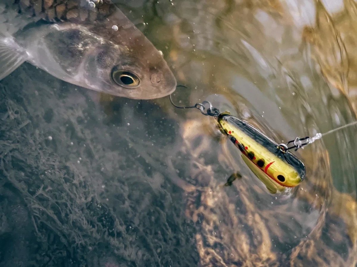 Голавль отлично реагирует, как на проводку в толще, так и на подобия окуневых подбросов в районе дна. Иногда, на фазе падения, после заброса уже можно получить поклевку. Это не мудрено, так как, BTK Swimmer на падении красиво сыпется, вроде того, как это делают пилькеры.