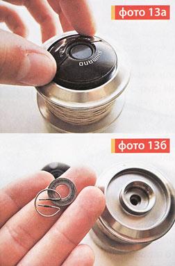 Например, если шнур укладывается прямым конусом, а спиннингист больше предпочитает ровную укладку в виде бочонка, то следует убрать одну регулировочную шайбочку и повторить намотку, и т.д., по аналогии с примером.
