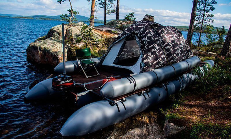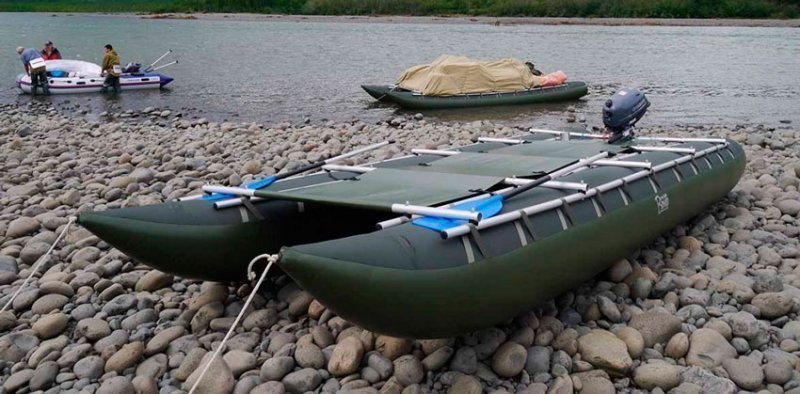 Катамаран относится к довольно специфическим плавсредствам, состоящим из двух надувных баллонов, соединенных с помощью рамы. Конструкция рамы может быть любой, но если это рыболовный катамаран, то рама, как правило, надувная.