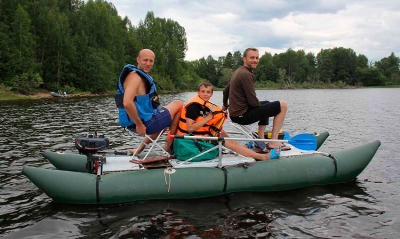 Кроме этого, катамаран довольно устойчиво ведет себя на воде, даже в условиях серьезных волнений. Поэтому, этому плавсредству не страшны никакие речные просторы. Что касается установки мотора, то он необходим в том случае, если планируются длинные походы с друзьями или в кругу семьи. Некоторые конструкции рассчитаны на перемещение до 10-ти человек.