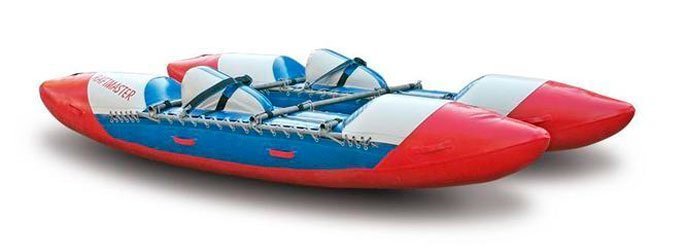 Эти плавсредства могут взять на борт 4 человека, при грузоподъемности в 500 кг. Рундуки этих аппаратов не имеют большой жесткости, хотя встречаются конструкции, где предусмотрено 2 опоры. У этих плавсредств, в основном, размещено по два баллона. Ширина катамарана для рыбалки не превышает 1,3 метра. Воздушные клапаны располагаются в районе стрингеров. Заполнить баллоны воздухом можно в течение 10-ти минут. В этих конструкциях используются особо прочные материалы. Приобрести такой катамаран можно за 45 тыс. рублей.