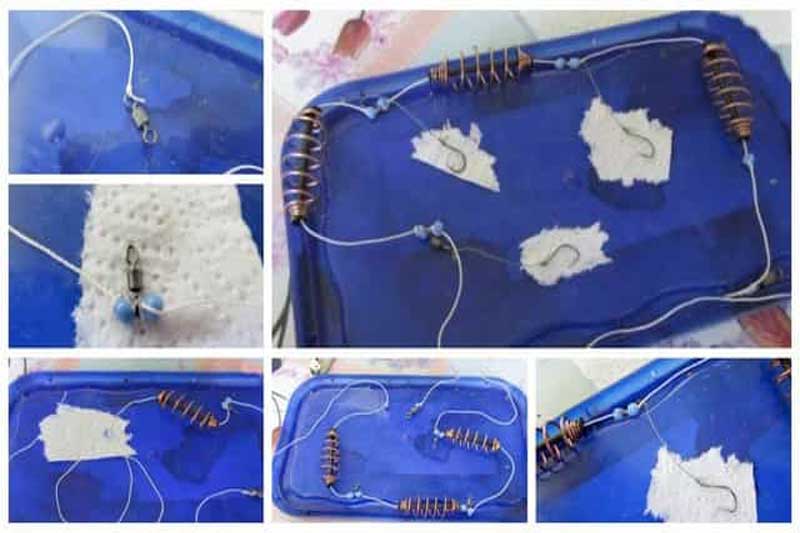- После того как смонтировали все элементы снасти на другом конце шнура вяжем вертлюг побольше - для крепления к основной леске.
