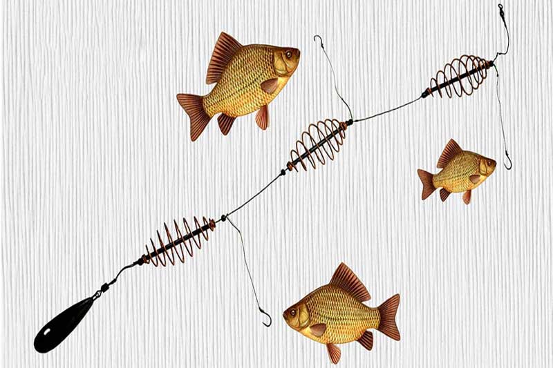 Это получается из-за того, что вся магазинная снасть устроена «глухим» способом. То есть кормушки и крючки привязаны наглухо.