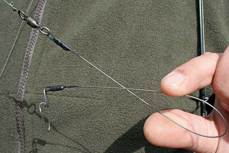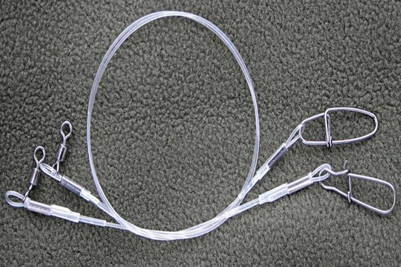 Уместно поставить более тонкий поводок из стали или титана, с диаметром примерно в 0,2 мм. Также не забывайте про маленькие вертлюжки и застежки. Применимы и поводки из флюорокарбона.