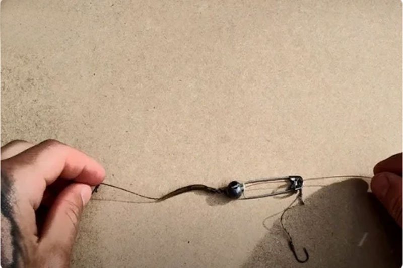 Осталось дело за поводками с крючками. К самому вертлюжку привязываем один, а другой к заводному колечку.