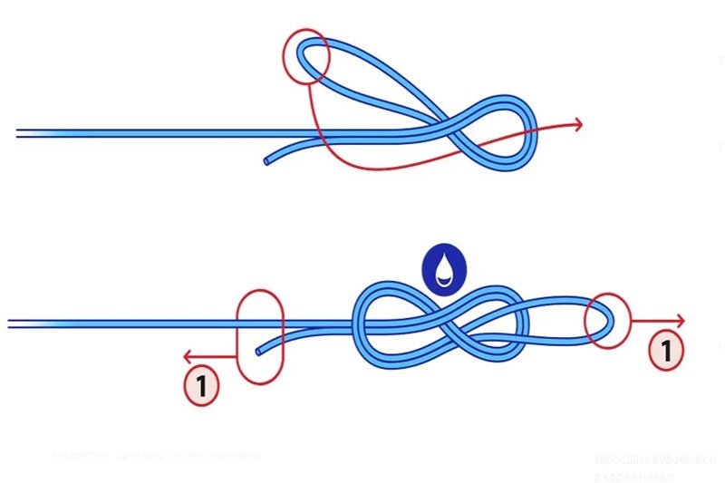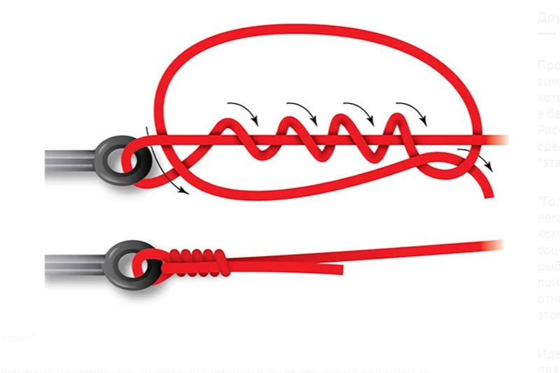 Короткий конец петли будет служить для крепления дополнительной мягкой приманки, длинный - для соединения с основной леской, а коренной - для крепления поппера.