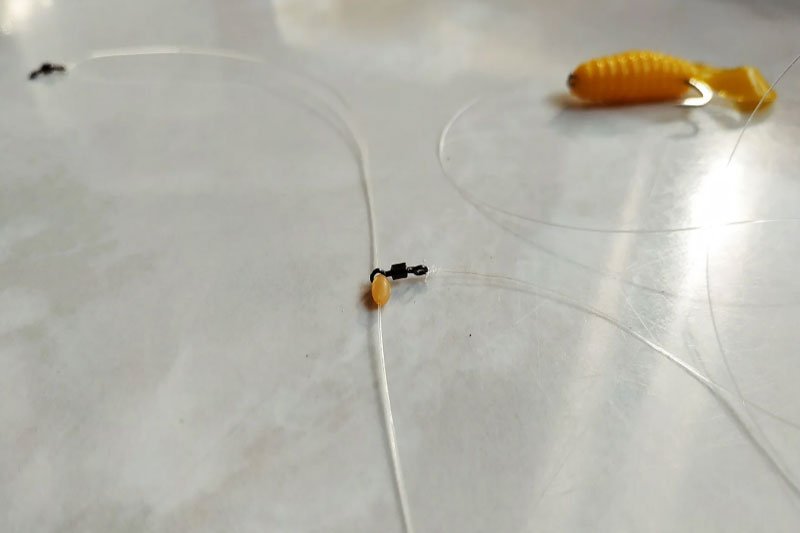 Чтобы улучшить чувствительность оснастки, отводной поводок крепится на отдельном вертлюжке, который скользит: