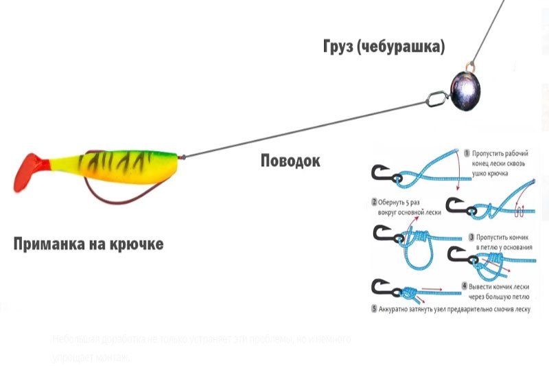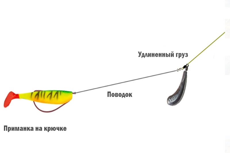 На конце поводка находится крючок с приманкой - твистер, слаг, виброхвост или что-нибудь другое.