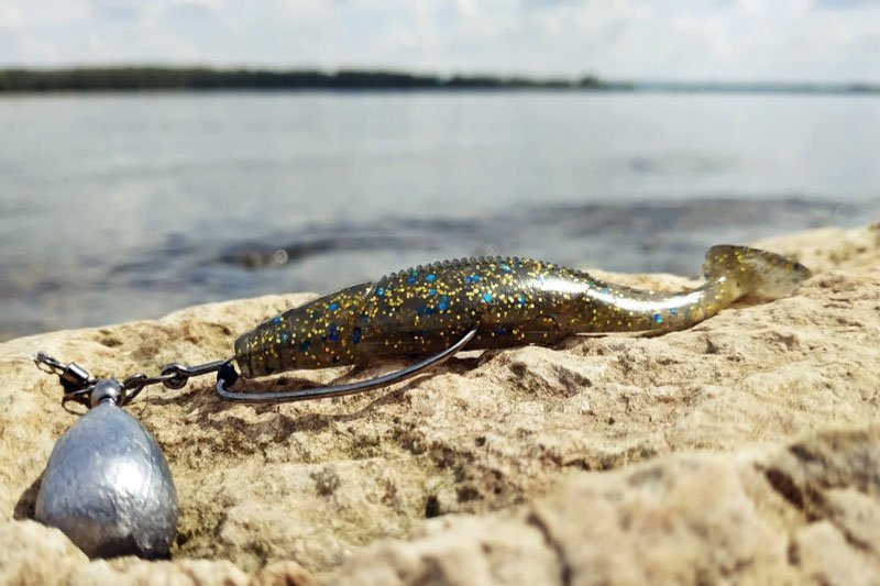 Удлиненное грузило увеличивает дальность и точность заброса, а монтаж на офсетном крючке, делает ее почти незацепляемой. Она превосходно проходит сквозь водоросли и легко преодолевает отдельные коряги.