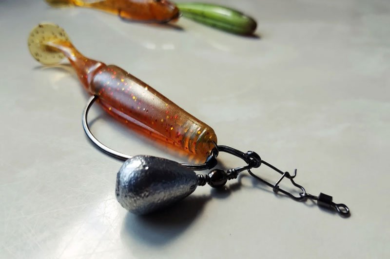 Как говорилось, ничего нового: есть грузило, крючок и приманка, соединенные между собой, но в отличии от классического джига, грузило в этой оснастке не соединяется с основной леской напрямую, а остается подвешенным свободно.