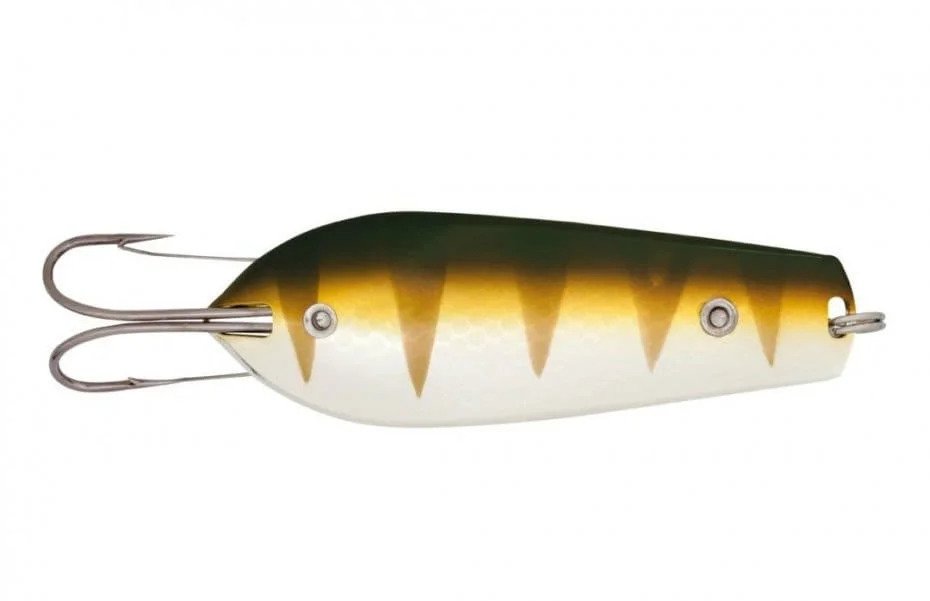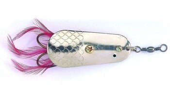 А это уже американская блесенка, очень надо сказать, результативная. Еще нельзя не отметить высокое качество и грамотное расположение крючков. Сходы с такой блесны - редкость, зацепы тоже. Единственный минус, что сложно найти. Но, кто ищет, тот всегда найдет!