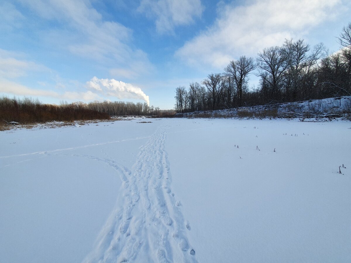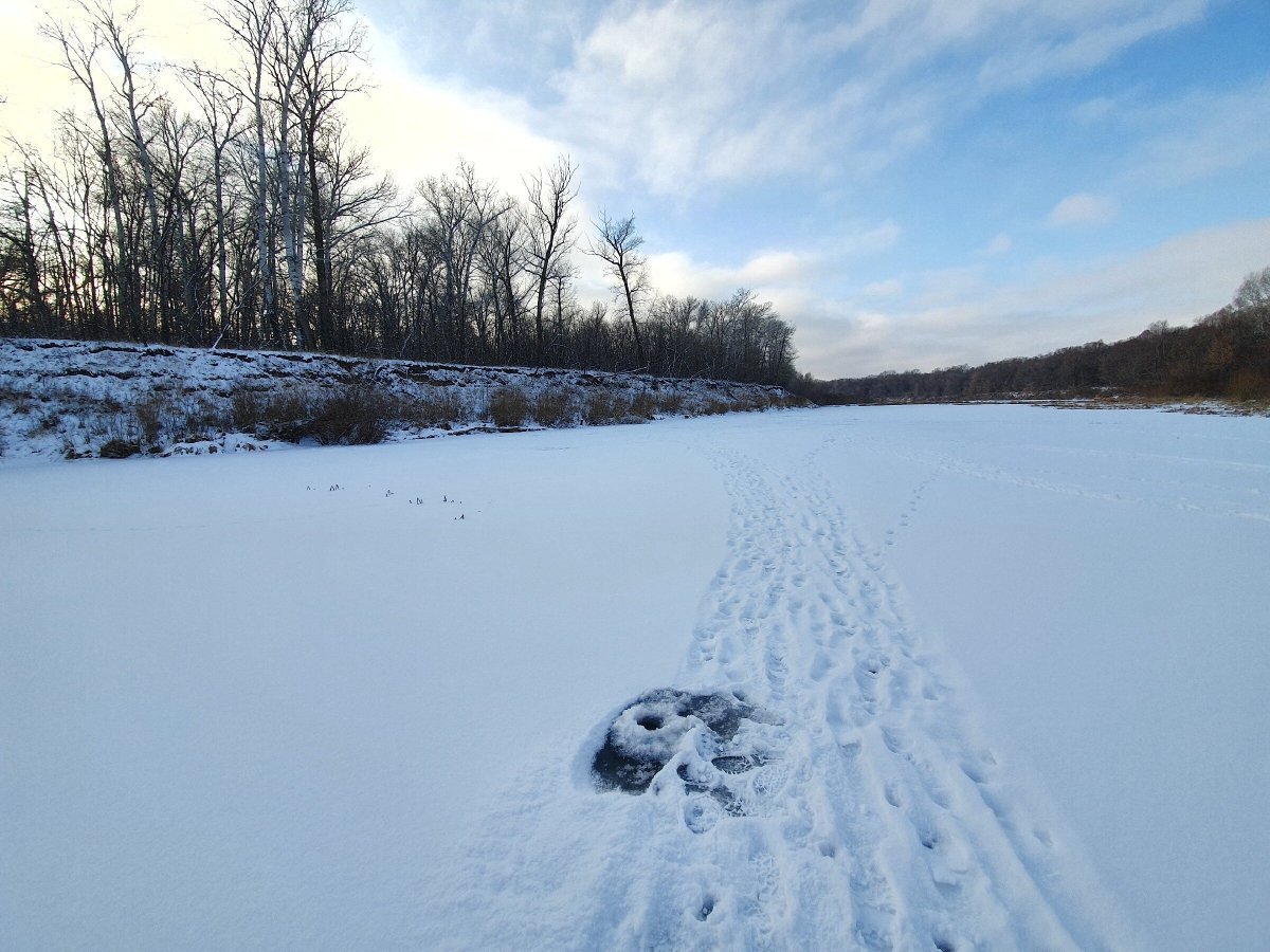 Поехал на рыбалку в один из затонов реки Сакмары. В русле реки с краёв всё замёрзло, а посередине ещё полынья. Почему-то рыба не клюёт, когда неподалёку полынья. Не знаю с чем это связано, но это наблюдения ни только мои.
