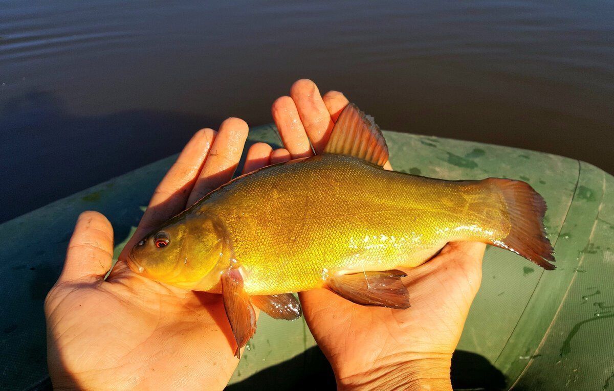 На нем запечатлен речной линь - красавец! Он словно из золота и переливается на солнце. Этого линя я освободил из браконьерской сети, на одной из рыбалок с лодки.
