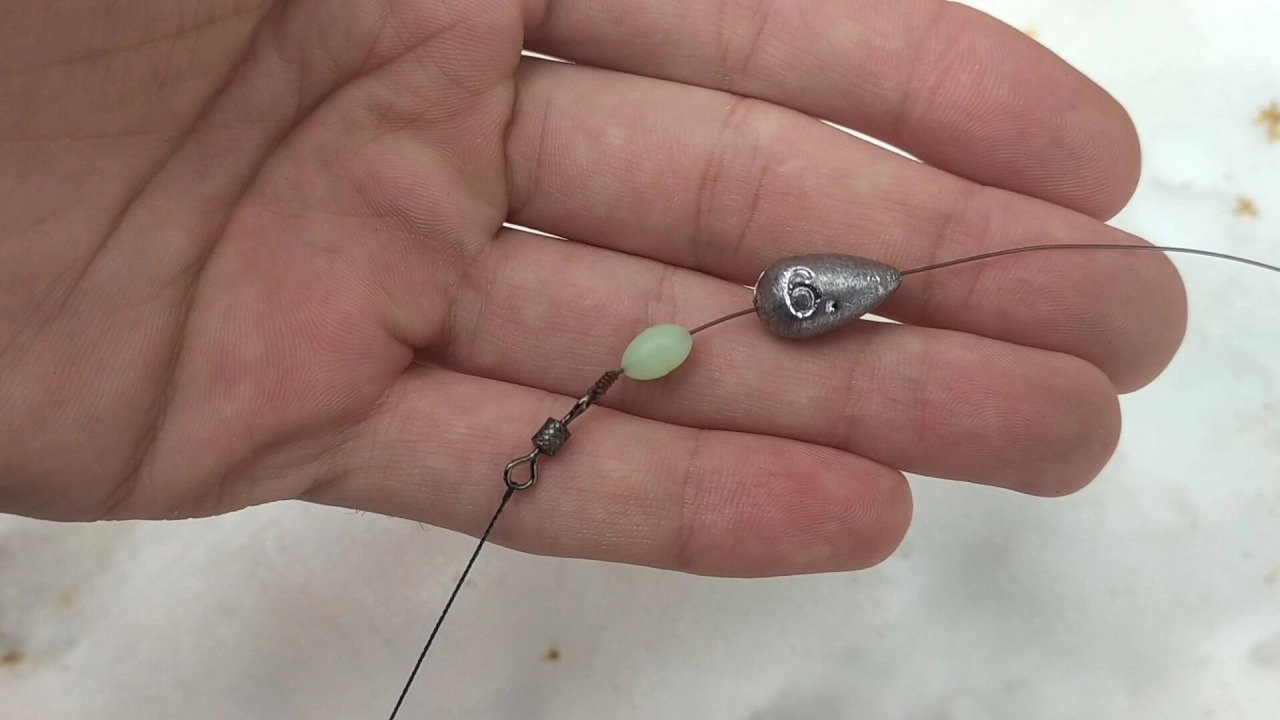 Мало того, что груз вы поставили скользящий. Нужно ещё и убедиться, что он нигде не будет застревать. А застрять он может, например, на узле, который соединяет поводок с основной леской. Для этого между узлом и грузилом ставится резиновый стопор. Такого размера стопорок, чтоб в отверстие грузила он не помещался (а то и в стопоре грузило может застрять).