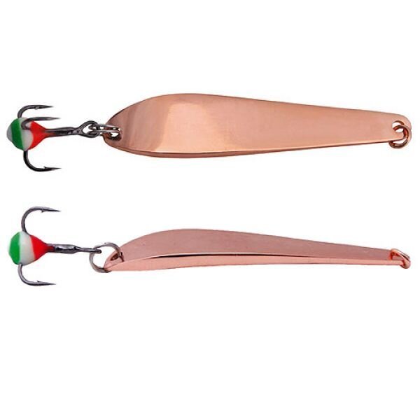 Высокотехнологичная блесна со сложной геометрией, имеет смещенный центр тяжести. Изначально разрабатывалась для ловли в теплое время года. Но с успехом применяется и при зимнем блеснении. Выпускается в нескольких весах: 10, 17, 28 грамм. Доступна в трех вариантах окраски: серебро, медь, латунь.