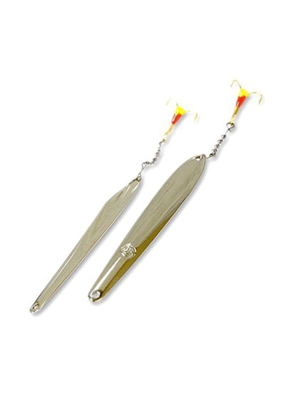 Достаточно тяжелый пилькер, весит 60 грамм. Напоминает внешне настоящего малька, так как имеет рельефный оттиск по бокам и 3D глаза. Окрас может быть как натуральным, так и ярким. Отлично подходит для отвесной ловли и ловли спиннингом в заброс. Легко забрасывается на дальние расстояния, ведь приманка небольшая и тяжелая. В море на нее лучше всего клюет макрель и треска, в пресной воде - жерех и судак. Оснащена острым крючком тройником. Одно из лучших соотношений цены и качества, приманка отличается долговечностью