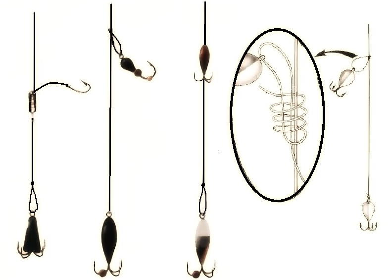 К концу лески привяжите блесну. Затем, отступив от блесны сантиметров 20, привязывайте поводок с вашим крючком. На крючок можно насадить любую живую наживку (опарыша, червей, мотыля) или просто красную нить. Некоторые энтузиасты привязывают даже ёлочную мишуру. Такая простая снасть имитирует движение мотыля, привлекая тем самым окуня.