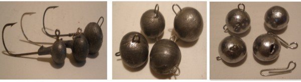 Грузы различаются не только по весу, но и по форме. Несмотря на это, большинство джиг-головок снабжены грузами шаровидной формы. Они подходят практически для всех условий спиннинговой ловли. Помимо шарообразных грузов, можно встретить и грузы в форме «сапожка» или «утюжка». Как правило, такие грузы характеризуются наличием широкой нижней плоскости, что не позволяет ему проваливаться в ил.