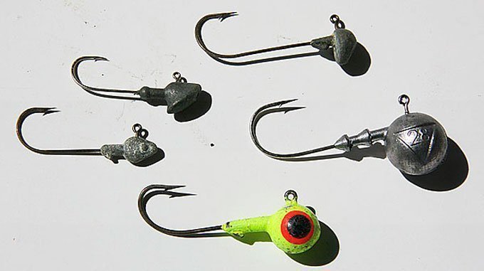 Для джиговой оснастки выпускаются джиговые приманки. Они состоят из двух частей: самой приманки и джиг-головки, определенного веса и определенной формы. Вес джиг-головки подбирается в зависимости от условий лова. На больших глубинах применяют тяжелые приманки, а на отмелях более легкие. Форма приманки подбирается под характер дна водоема. Если дно илистое, то предпочтительнее остановить свой выбор на джиг-головке с плоским основанием.