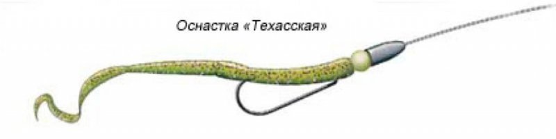 Оснастка под названием Техас характеризуется наличием груза в виде пули и офсетного крючка, на котором имеется приманка в виде червя. Груз имеет отверстие, проходящее вдоль ее оси, в результате чего он может скользить по леске. В нижней части груза располагается выемка в виде полусферы, в которой может прятаться верхняя часть приманки. При использовании офсетного крючка, его жало можно спрятать в теле приманки, что сводит зацепы к минимуму.
