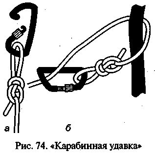 Несмотря на это, подобное крепление применяется и довольно часто, особенно в тех случаях, когда требуется постоянное подтягивание соединений. Если необходимо вытащить автомобиль из ямы, то лучшего варианта, чем карабинная удавка и не придумаешь.