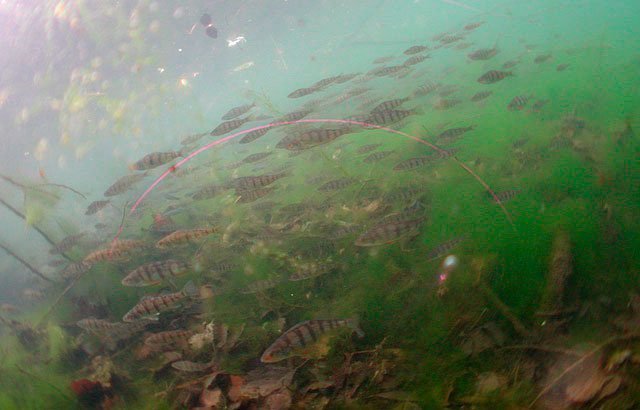 Как только температура воды достигнет отметки +8°С и начнет повышаться, следует ожидать полного прекращения клева. Этот фактор укажет на то, что окунь уходит на нерест. Второе условие связано с насыщенностью воды кислородом. Поэтому, окунь, никогда не пойдет на нерест, если водоем покрыт льдом.