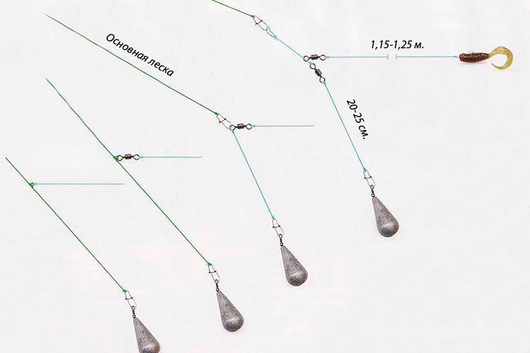 Грузок крепится к концу основной лески глухо или с помощью карабина. На расстоянии 30-50см от груза крепится крючок, причем без поводка, непосредственно на леске. Крючок может иметь любой размер, но всем известно, что ротан не вырастает до крупных размеров, поэтому можно взять крючок 7-го размера или 10, но отечественной классификации. В качестве грузка можно взять огрузку продолговатой формы с резиновой трубочкой, чтобы свести к минимуму зацепы.