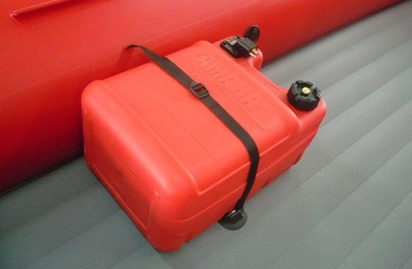 Такие элементы, как дополнительная канистра для бензина, требуют обязательного крепления. Это необходимо для того, чтобы при движении или резких поворотах канистра не могла изменить своего местоположения. Крепление осуществляется посредством веревки и полуколец, прикрепленных к лодке. Они крепятся к лодке следующим образом: