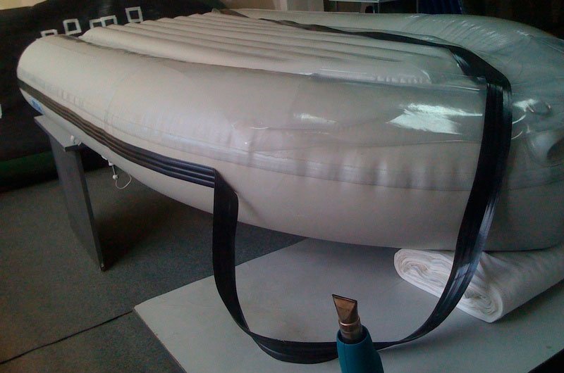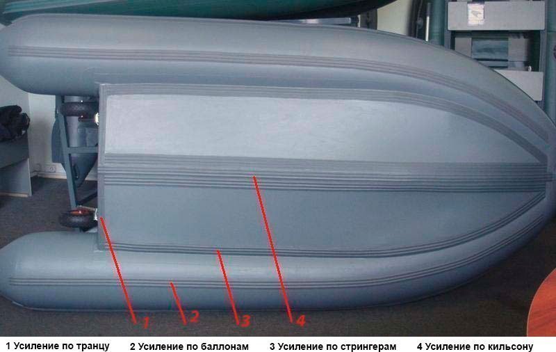 Усиление дна производится путем приклеивания специальной ленты ПВХ, которая называется «привальным брусом». Привальный брус может иметь толщину 1,2-3 мм при ширине 60-235 мм. Крепится он с помощью 2-х компонентного клея. Это позволит сделать дно более жестким и более защищенным от различных подводных сюрпризов.