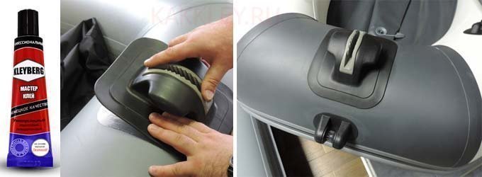 Все дополнительные элементы крепятся к лодке ПВХ с помощью двухкомпонентного клея. Существует несколько моделей универсальных крепежных систем. Если ее установить, то к ней можно приспособить любые элементы.