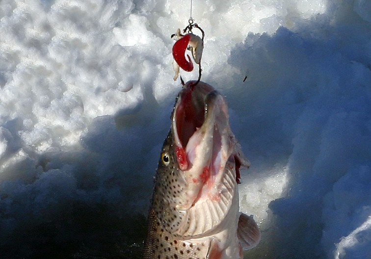 Для этого используют искусственные приманки или живец, а также зимние классические удочки. В тех местах, где река не покрывается льдом даже зимой, на обычную болонскую удочку ловится хариус.