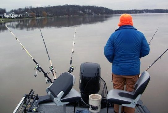 - Речной троллинг. Он предполагает использование не таких мощных снастей, хотя при ловле сома также применяются мультипликаторные катушки, но с меньшим количеством лески. Вместо мощных морских удилищ возможно применение обычных, но надежных спиннинговых удилищ.
