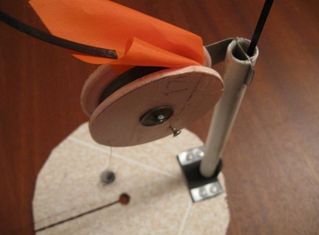 Жерлица готова к употреблению к концу трубы, в точке подвеса (крепления) следует закрепить красный скотч, который может послужить индикатором поклевки.