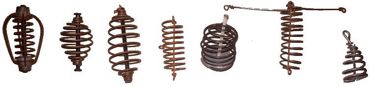 - Пружину можно изготовить самостоятельно, но можно приобрести и в магазине, так как она не дорого стоит. К кормушке привязывается несколько поводков с крючками. В качестве поводков лучше применить плетеную леску, как более эластичную, по сравнению с монолеской.
