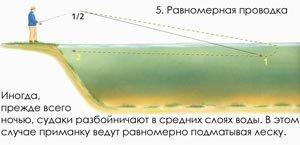 После подъема на нужную высоту, приманке опять дают возможность опуститься ближе ко дну.