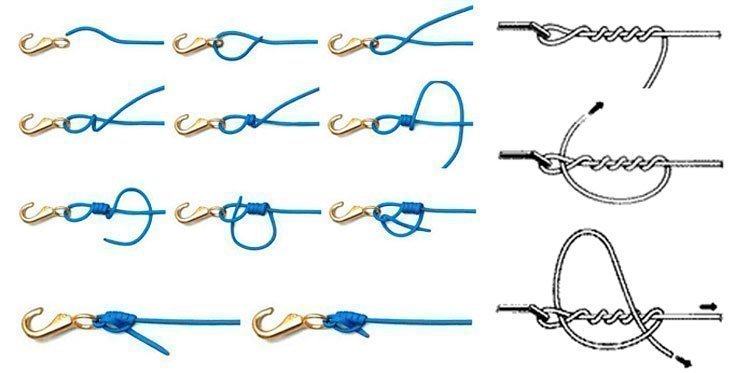 Чтобы закрепить рыболовную оснастку применяются самые разнообразные узлы для лески. С улучшение материалов, применяемых для рыбной ловли, совершенствуются и техники как вязать рыболовные узлы. Если раньше использовали только монофильную леску, то теперь чаще применяется плетеная леска, как наиболее прочная. Те узлы, которые используются для обычной лески, могут не подойти для плетеной. Это связано с тем, что она имеет другую структуру. Плетенка выполнена способом переплетения нескольких нитей в один шнур или их склеиванием между собой. Если связывать материал одинаковым способом, это будет вызывать разные деформации. На бобинах с леской обычно имеется информация о том, какие узлы из нее лучше плести. Если данной информации нет, то определять способ придется самостоятельно. Если структуры ровные и спаянные, то делают узлы, в которых меньшее количество затягиваемых петель. Шнуры, которые выполнены из плетеного шнура, более устойчивы к деформации. Однако на них лучше не затягивать сильно узлы, так как это может вызвать мохрение волокон. Также рыбаку стоит учитывать, что узлы на плетеной леске отрицательно сказываются на параметре разрывной нагрузки.