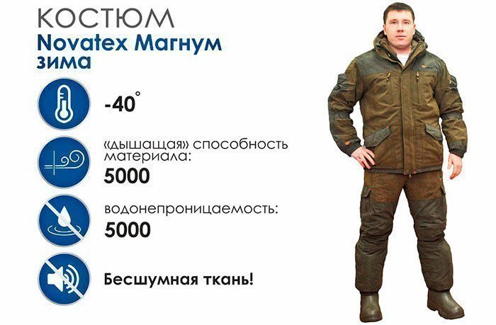 Производится подобный комплект в России и представляет отличное соотношение цена/качество. Если долго сохранять неподвижность, одежда сохраняет так же долго оптимальную температуру тела.