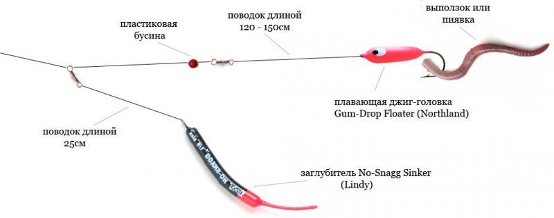 Применение «чебурашки» позволяет смонтировать гибкую оснастку, которая дает возможность использовать не только одинарные крючки. При этом, гибкая оснастка имеет другую, более привлекательную игру. Более простой и доступный вариант, это традиционная джиг-головка.