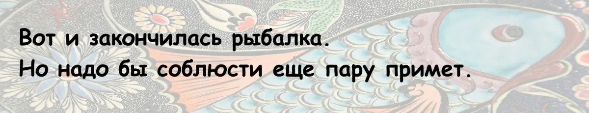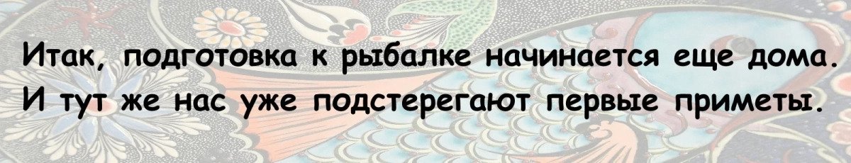 - Всех своих "домашних жителей", надо сразу приучить правилу: нельзя желать удачи, когда вы едете на рыбалку. А то ляпнут, сдуру то и все настроение на смарку. А коли хотят доброго слова сказать. Так пусть желают - ни хвоста, ни чешуи!