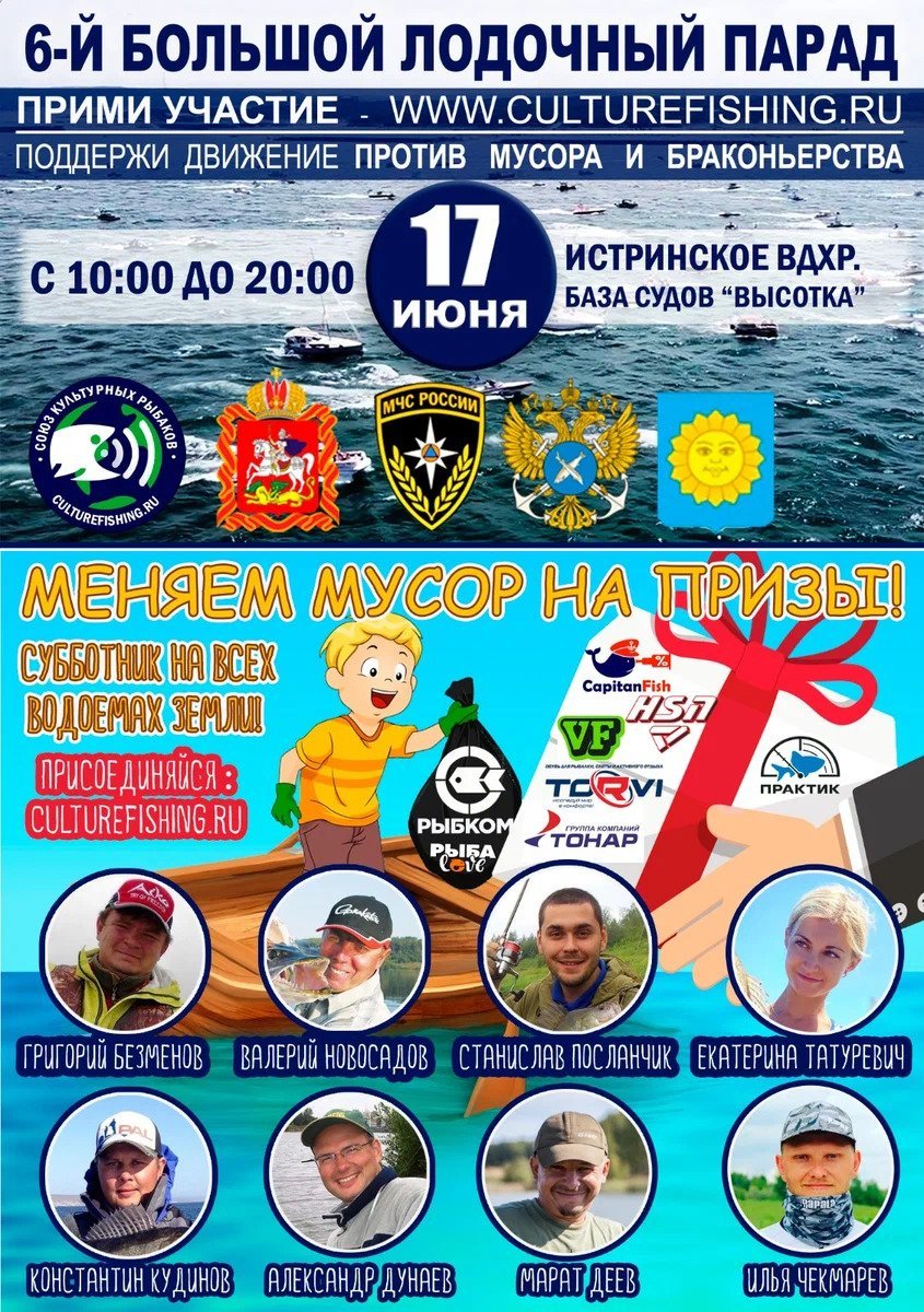 17 июня 2023 года экологическое движение «Союз культурных людей и рыбаков» приглашает всех желающих на большой лодочный парад против мусора и браконьерства, который традиционно состоится на Истринском водохранилище (Истринский г.о, д. Дьяково, пансионат «Высотка») с 10:00 до 20:00.