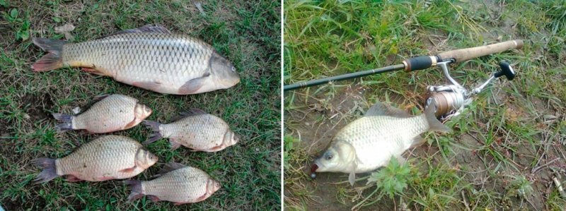 - золотой карась имеет более крупную формы головы, если посмотреть сбоку, а серебряный – более заостренную;