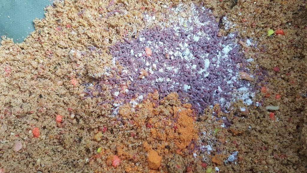 Добавлять в прикормку всего мотыля не стоит еще и вот по какой причине. Эти личинки достаточно нежные и прикормка для них не очень благоприятная среда. В ней они быстро гибнут. Вообще мотыль требует отдельного ухода еще во время хранения - его нужно периодически проветривать и увлажнять. Это если он находится у вас сутки и больше. Непосредственно перед рыбалкой мотыля желательно присыпать сухой землей и размешать, таким образом личинки отделятся друг от друга, дольше живут и рыбе становится труднее выискивать их в прикормке.