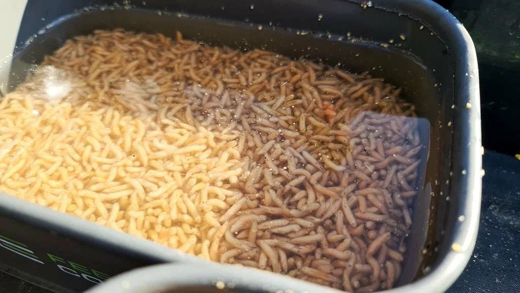 Опарыш, напротив, живучая и очень активная личинка, которая постоянно двигается, разбивая прикормочные шары или вываливаясь из кормушек. Для предотвращения этого, его перед добавлением в прикормку иногда ошпаривают кипятком или топят в холодной воде. Цель таких процедур обездвижить личинки. Кстати, есть мнение, что в ряде случаев рыба и в качестве приманки предпочитает живому опарышу “вареного”.