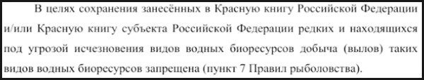 Так же существует перечень особо ценных биоресурсов (более 50 видов), которые в целях сохранения занесены в Красную книгу и согласно пункту 7 Правил рыболовства ловить их запрещено.