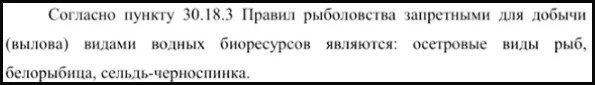 Согласно пункту 30.18.3 Правил рыболовства в нашем регионе запрещено ловить осетровые виды рыб, сельдь-черноспинку и белорыбицу.