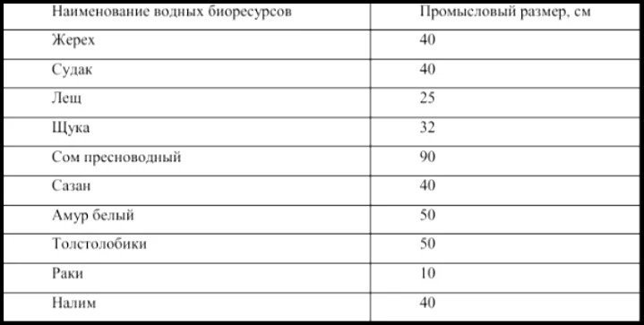 Рыбу имеющую длину менее указанной в таблице запрещено не только ловить, но и хранить, перевозить, продавать и поддавать обработке.
