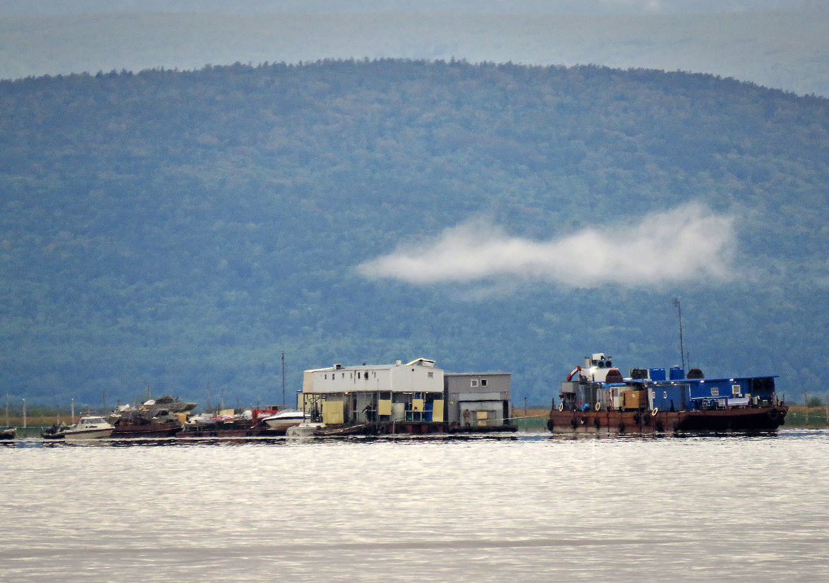 На волнах и берегах которого болтаются, натурально, десятки рыбзаводов на понтонах, баржах и списанных судах: