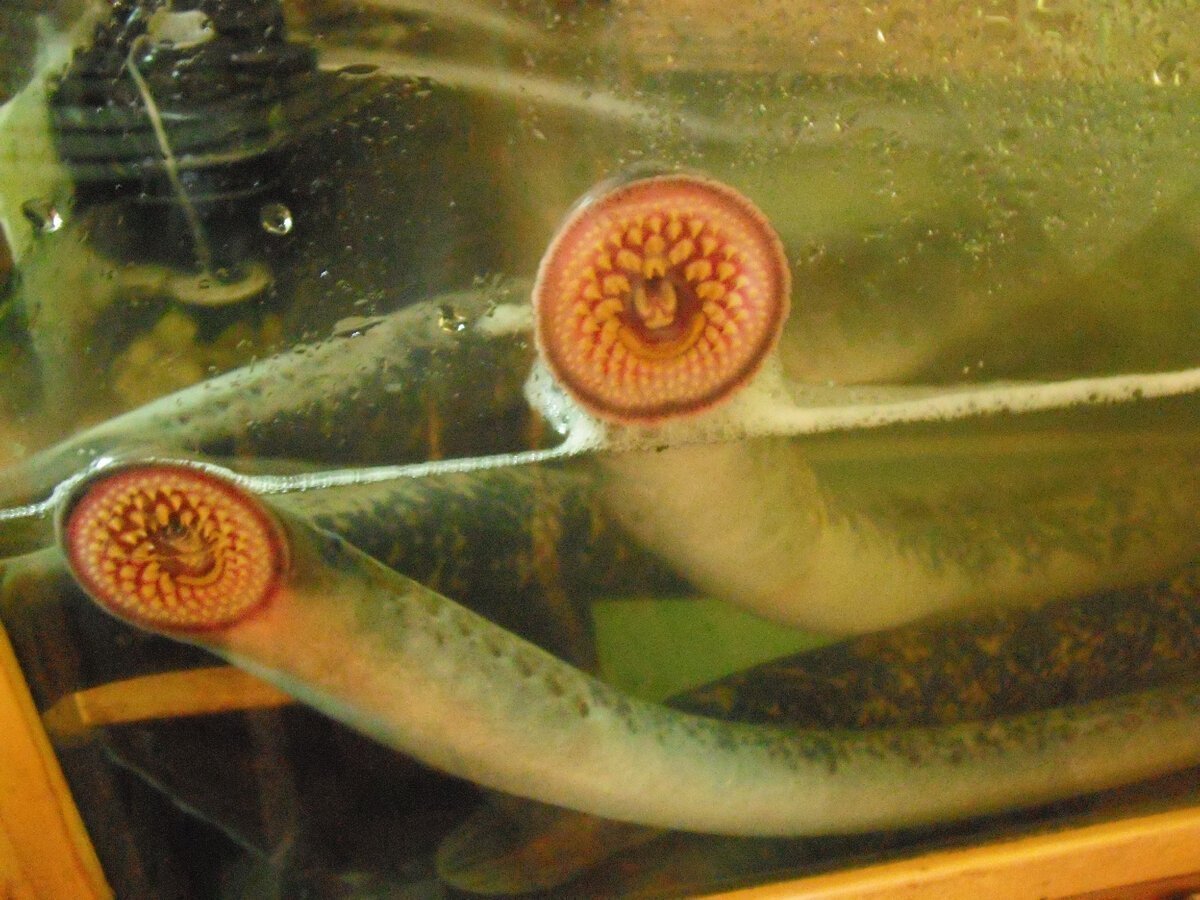 Вторая причина успеха — налаженная система размножения. В теории у морских миног всё выглядит так: зверюги сначала копят жир, затем бросают всё, перестают питаться, покидают океан и плывут к рекам. Поднимаясь вверх по течению, животины делают ямки в песке и откладывают икру, после чего и самки, и самцы погибают.