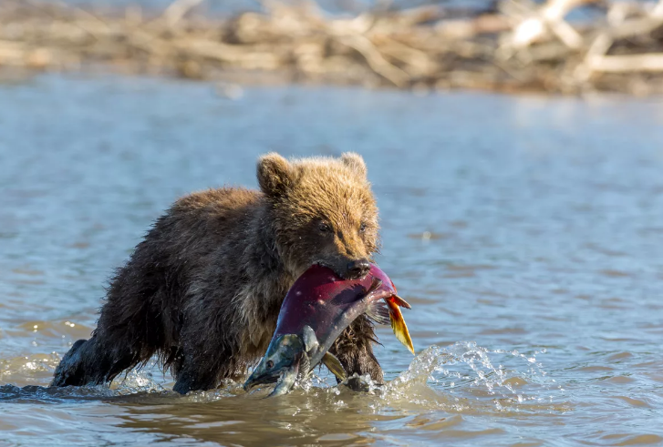 Мужчина вспомнил о разговоре среди знакомых в деревне, в котором говорилось, как одного рыбака укусил медведь. И он тут же решил угостить мишутку увесистым хариусом. Взяв в пасть трепыхавшуюся рыбу, он с аппетитом стал уплетать её, оставив половину, с которой побежал в заросли леса.